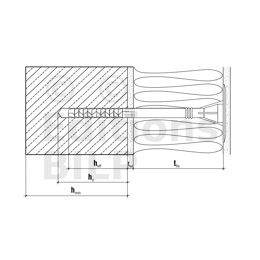 - Profondeur d’ancrage (hef)70mm