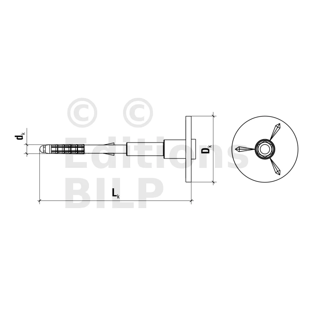 - Cheville avec collerette de coupe.