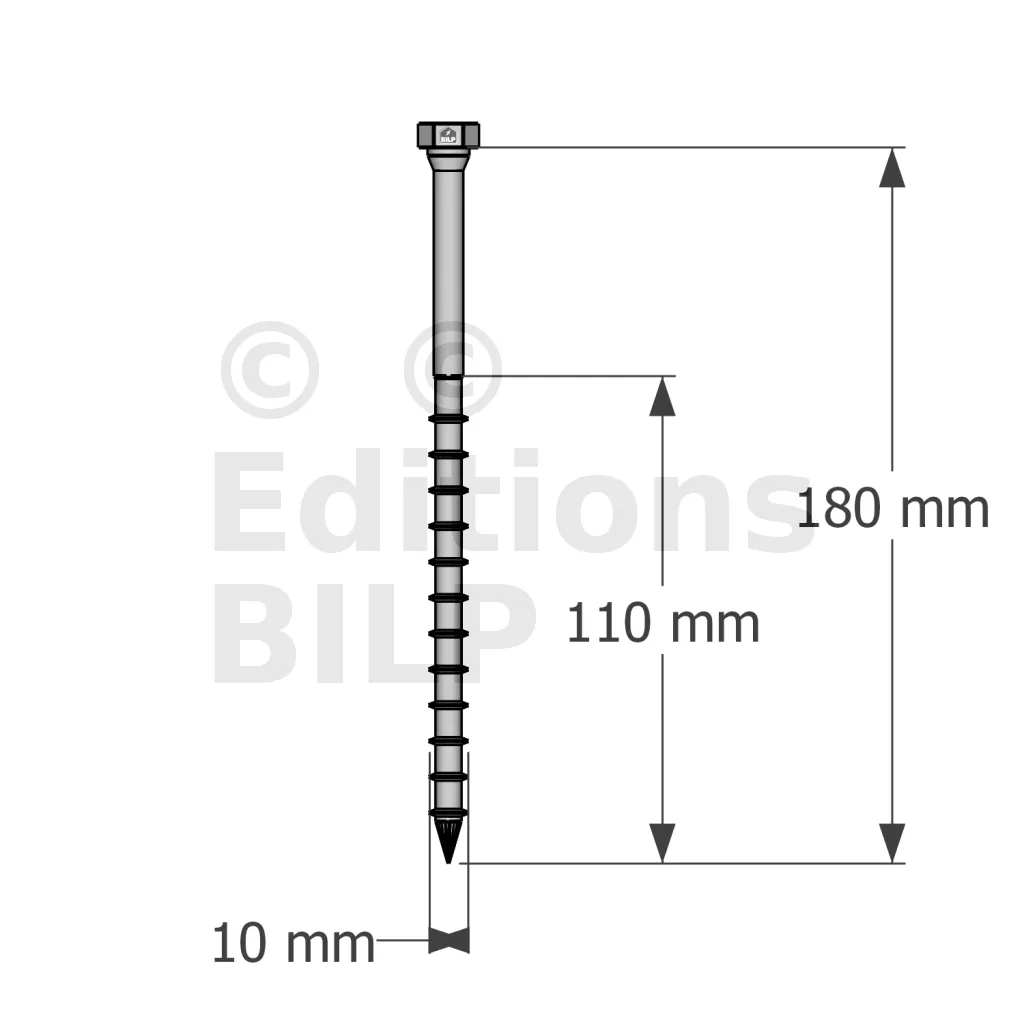 Vis connecteurs acier sur bois, SSH10.0X180 - Réf. 75158