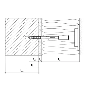 Cheville d’isolation à visser avec clou métal et rondelle d’appui télescopique pour la laine minérale - Diamètre 8mm