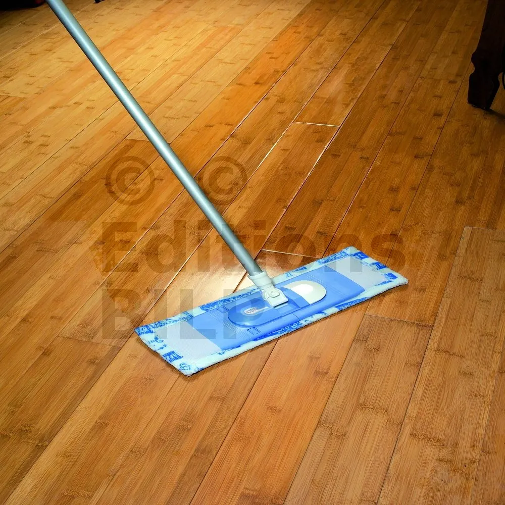 - Après séchage, effectuer un rinçage à l’eau avec un balai serpillière en évitant de faire des flaques.