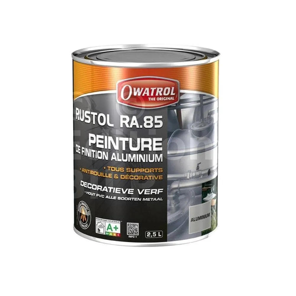 - Le RUSTOL-ALU RA.85 est à base de RUSTOL-OWATROL ; il sèche donc lentement, ce qui permet d’obtenir un film lumineux et très régulier qui, par ailleurs, conserve toujours une certaine souplesse.