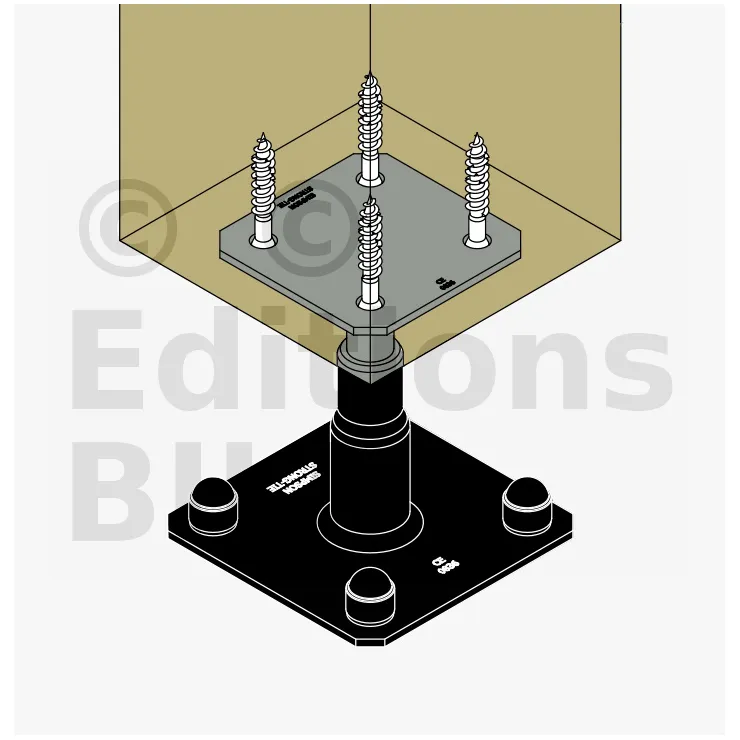 2. Fixer cette platine au poteau à l’aide de tirefonds LAG (pré-perçage nécessaire)