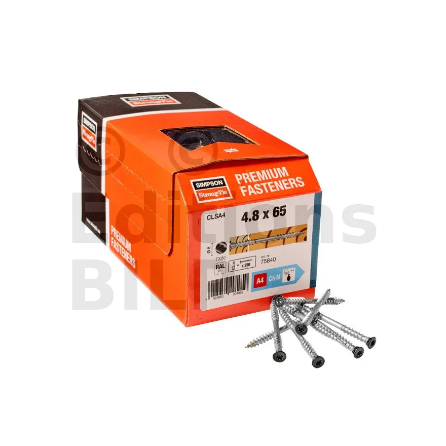 La vis CLS, conforme au DTU 41.2, a été conçue pour l’assemblage d’éléments bois tels que les bardages claire voie ou clin. Elle peut aussi être utilisée pour la fixation de lames de terrasse et de garde-corps en bois. En inox A4, cette vis assure une excellente tenue en extérieur, y compris en milieux salins et chlorés et résiste à toutes les essences de bois, y compris les bois traités.