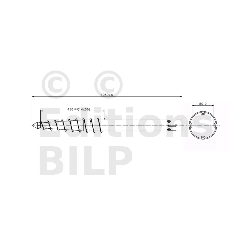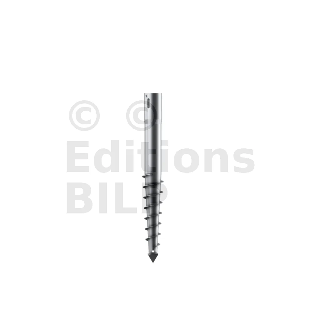 - à l’une des extrémités une pointe “harpon” surmontée d’une partie en spirale pour pouvoir creuser le sol,