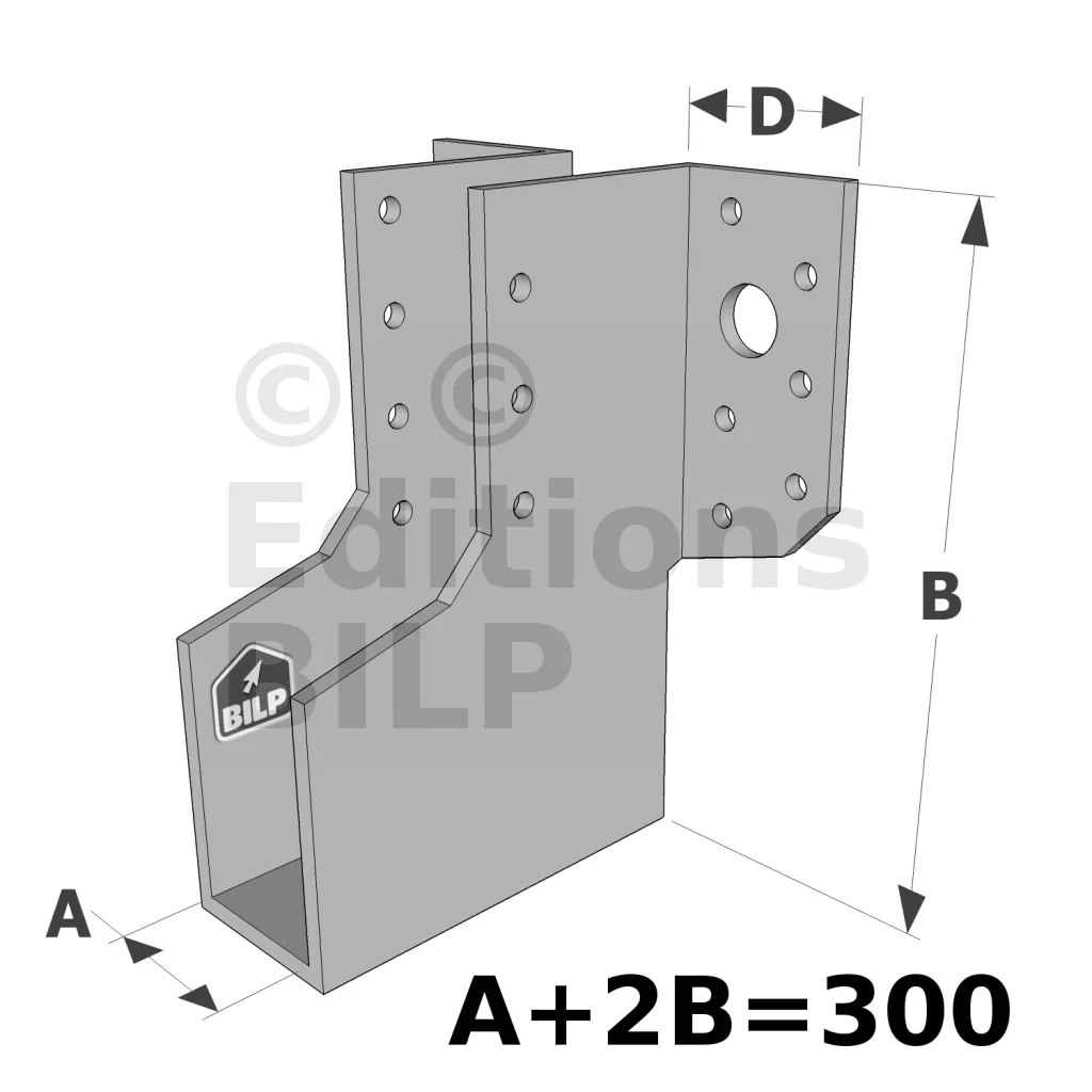 Grands sabots à ailes extérieures, gamme GLE ECONOMIQUE (développé 300mm, hauteur 134mm, épaisseur 4mm, profondeur 90mm) - Réf. GLE300/32/4